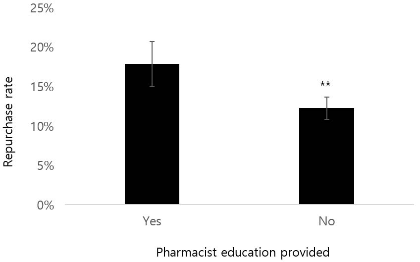 Fig. 1 Repurchase rates by pharmacist education support status |